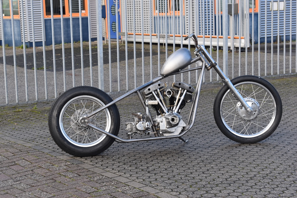 Zijn wens is een slanke Chopper en met dit frame gaat dat helemaal goed komen.