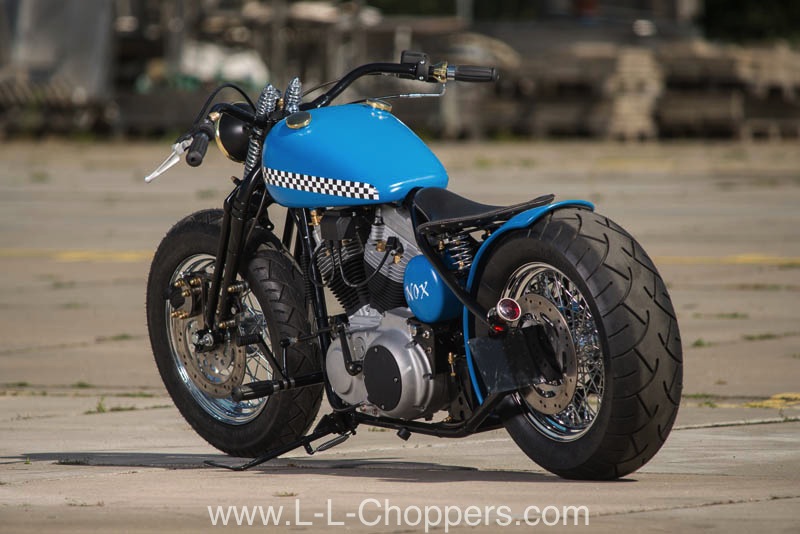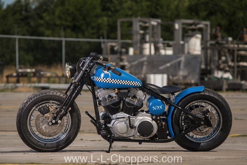 Ook deze Sportster werd verlaagd en verbouwd tot een soort bobber.”