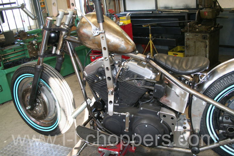 Furniture makers , clock makers , blacksmiths … Fewer and fewer people understand the art of old skool craftsmanship, which requires a pair of big callused hands, smart thinking and a creative mind. This craft is also needed for building choppers like the way they used to do it way back. Those days, there were no shelves packed full of ready-made chopper-parts… let alone AutoCAD and CNC machines.